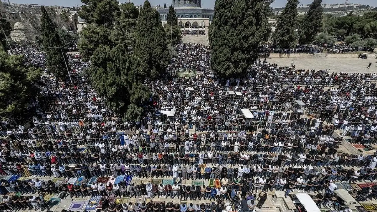 Harem-i Şerif’in El-Esbat (Aslanlı) Kapısı'nda ise kimlik kontrolü yapan İsrail polisi, bazı Filistinlileri tartaklayarak geri çevirdi, bazılarını da gözaltına aldı.