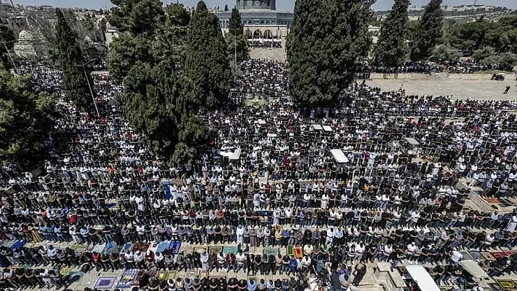 Kudüs İslami Vakıflar İdaresinden yapılan açıklamada, 30 bin Filistinlinin Harem-i Şerif'te cuma namazı kıldığı belirtildi.