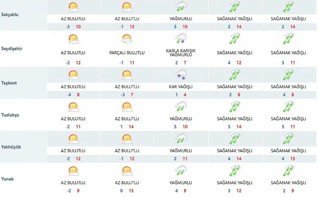 Konya'da hafta ortasında sakin seyreden hava, cuma gününden itibaren yerini yağmur ve sağanaklara bırakacak. Bazı ilçelerde ise karla karışık yağmur bekleniyor