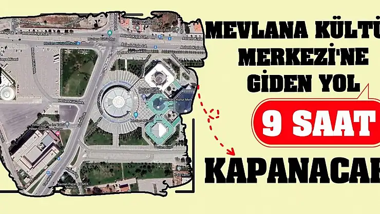 - Mevlana Kültür Merkezi'ne giden yol 9 saat kapanacak!