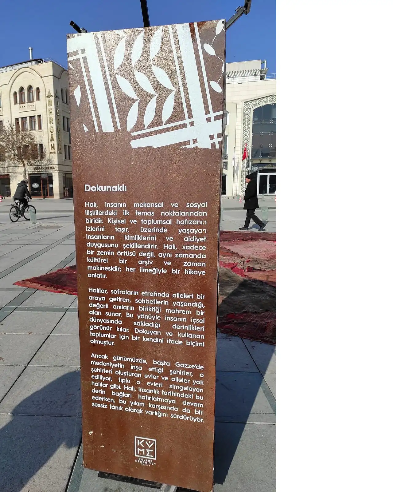 Merkezi İstanbul'da bulunan Kültür Medeniyet Vakfı (KÜME) tarafından İsrail'in Gazze saldırılarına dikkat çekmek için Mevlana Meydanı'na halılar serildi. Etkinlik vatandaşların ilgisini çekti.