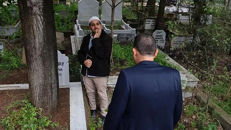 Mezarlık cami imamı ve güvenlikleri, mezar başında para kazanmak isteyen sahte hocalara karşı denetim gerçekleştirdi.