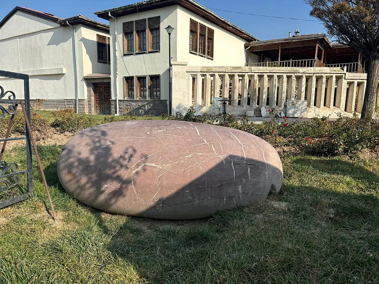 Bir başka rivayete göre müze bahçesindeki yumurtaya benzeyen taşı Alman sanatçı Wolfgang Laib tarafından yapılmış olup 1973 yılında Müze Müdürü Vahit Mescioğlu’na başvurarak Mevlâna Müzesi’ne mermer bir heykel yapmak istediğini bildiren sanatçıya Konya’dan mermer temin ederek iki aylık bir çalışma sonucunda yumurta biçimindeki bu mermer heykeli yapmış. Müzenin dışında bir yere konan heykel zaman içerisinde ziyaretçiler tarafından gökten düştüğü ve hastalıklara iyi geldiği söylentisine yol açtığından 1983 yılında müze bahçesi içerisine kaldırılmış.