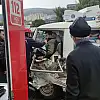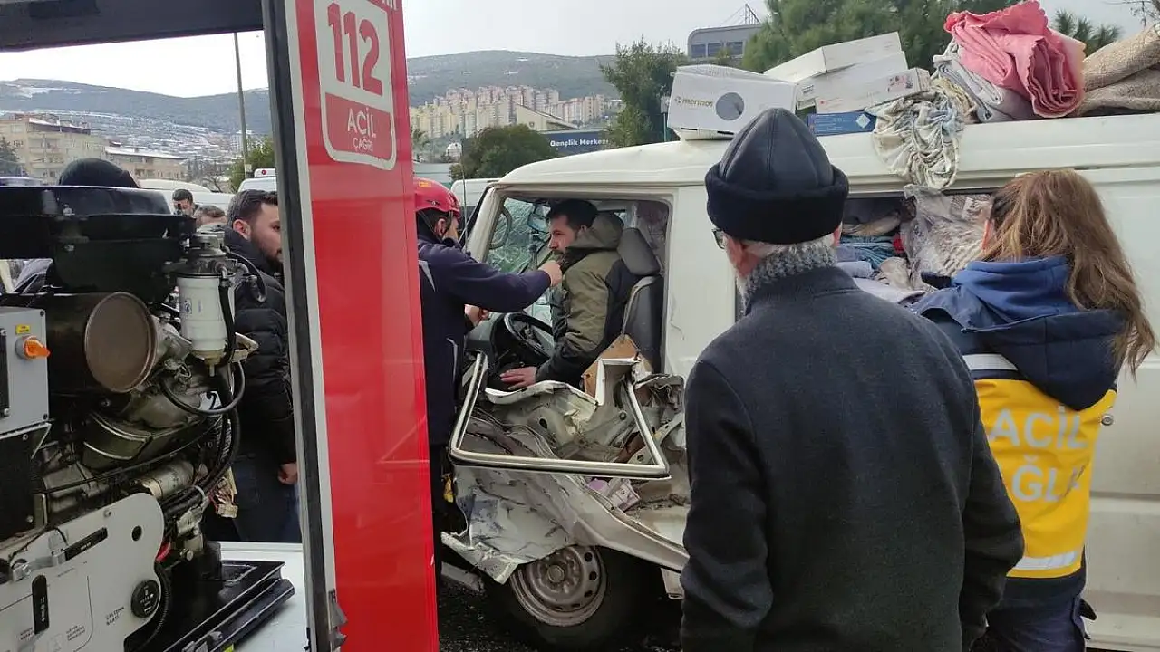 Kazada minibüs sürücüsü araç içinde sıkıştı.İtfaiye ekipleri tarafından araç içinden çıkarılan yaralı sürücü ambulansla hastaneye kaldırıldı.