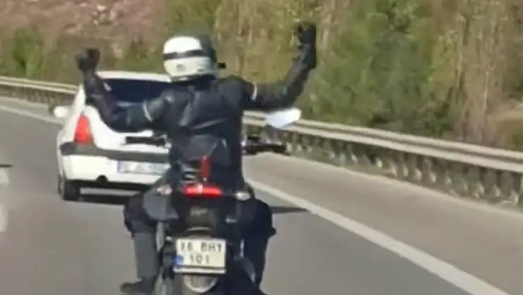 Bursa Çevre Yolunda seyir halinde olan motosiklet sürücüsü, iki tekerlekli araç üzerinde dans etti. Hem kendi hem de başkalarının canını hiçe sayan motosikletli, trafik kurallarını da hiçe saydı. Sürücünün ölümüne sollama yaptığı anlar da kameraya yansırken, trafikteki diğer sürücüler selektör yaparak uyarıda bulundu. Yürekleri ağza getiren sürücünün kilometrelerce dans ederek ilerlediği anlar ise trafikteki sürücüler tarafından kayda alındı.