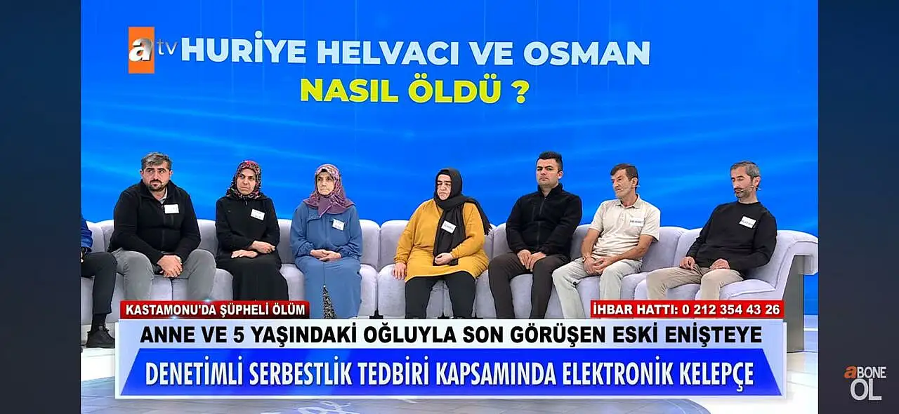 Kastamonu'nun Bozkurt ilçesinde kaybolduktan 10 gün sonra cansız bedenlerine ulaşılan Huriye Helvacı ile 5 yaşındaki oğlu Osman Helvacı nın ölümü, Müge Anlı ile Tatlı Sert programında detaylı şekilde incelenmeye devam ediyor.Olayla bağlantılı olarak adı g