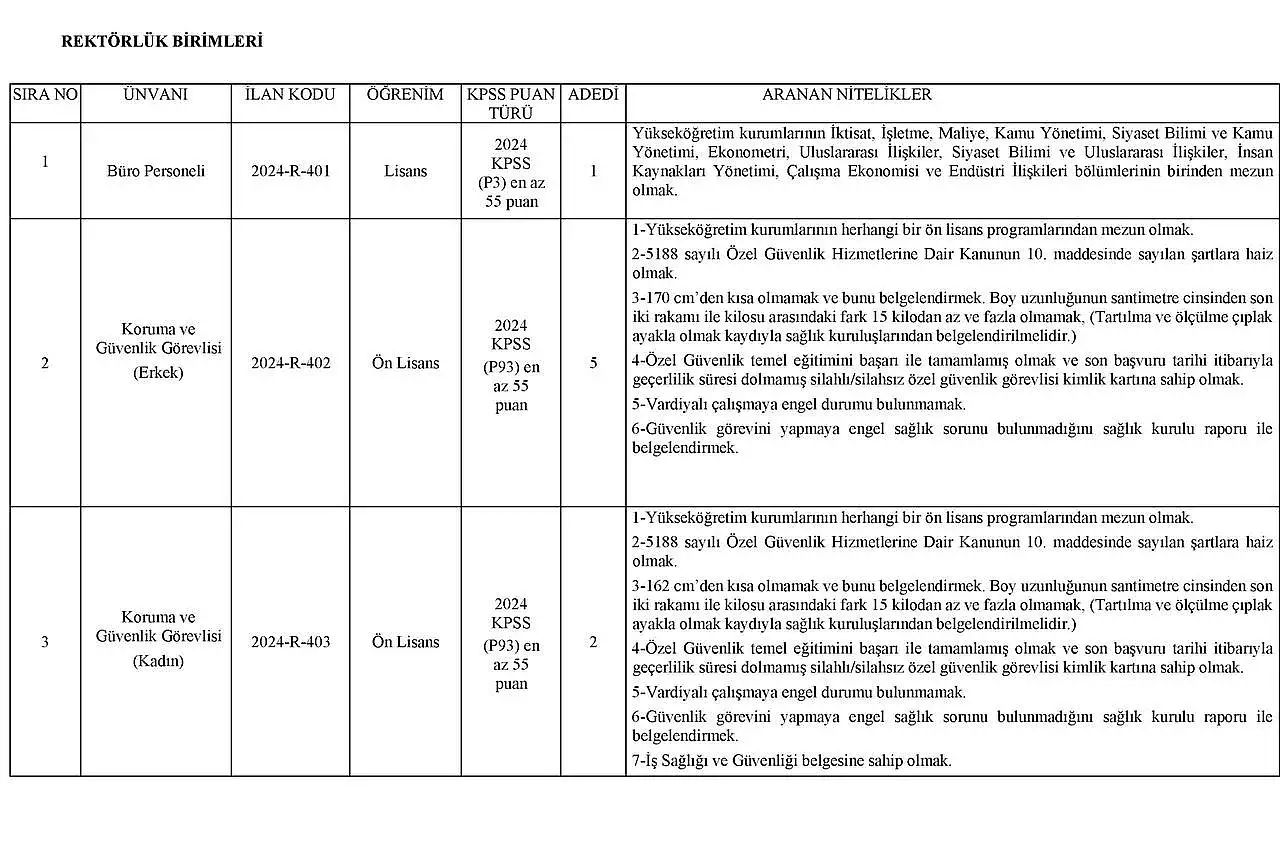 8) Koruma ve Güvenlik Görevlisi (Kadın) (2024-R-403) pozisyonuna başvuranlardan 1 (bir) kişi Ereğli yerleşkesinde görevlendirilecektir.