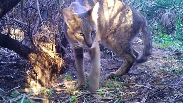 Kırıkkale kırsalında fotokapanlara yakalanan nesli tehlike altındaki saz kedisi, yavrularıyla birlikte görüntülendi.