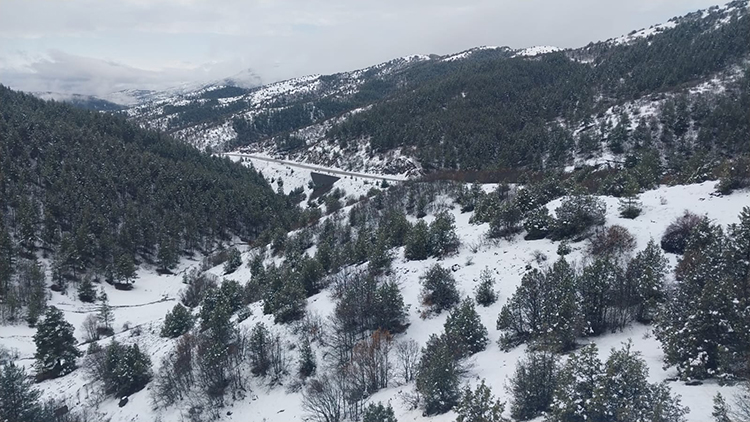 İlçede etkili olan sağanak yerini kar yağışına bırakırken, kayak merkezi pistleri, sarıçam ormanları ve bitkiler karla kaplandı.