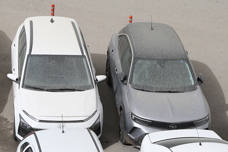 Ayrıca, park halindeki araçların üzeri de tozla kaplandı.