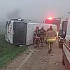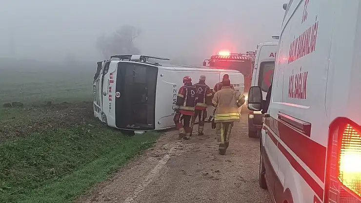 Balıkesir'in Bandırma ilçesinde N.T. yönetimindeki midibüs, ilçeye bağlı Külefli Mahallesi kara yolunda kontrolden çıkarak devrildi.