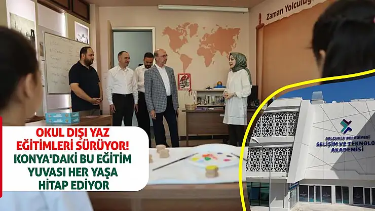 Selçuklu Belediyesi’nin eğitime önemli bir desteği olan Selçuklu Gelişim ve Teknoloji Akademisi’nde yaz dönemi eğitimleri İHA Mekatronik, Siber Güvenlik, Harita CBS, Tarih, Genç Kalemler, Vefa Gençlik, Moda Tasarım, Organik Oyuncak, Müzik, Takı Tasarım, Hat sanatları, Fotoğrafçılık ve Nostaljik Fotoğrafçılık olmak üzere 13 kategoride gerçekleştiriliyor. Akademide gerçekleştirilen eğitimlerden ortaokul ve lise öğrencilerinin yanı sıra yetişkinlerde faydalanıyor.