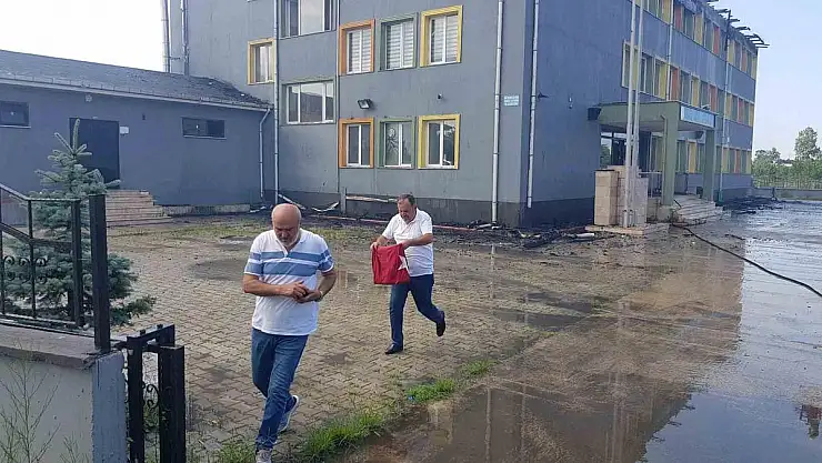 Okulun çatısı alevlere teslim oldu, polis Türk bayrağını kurtardı
