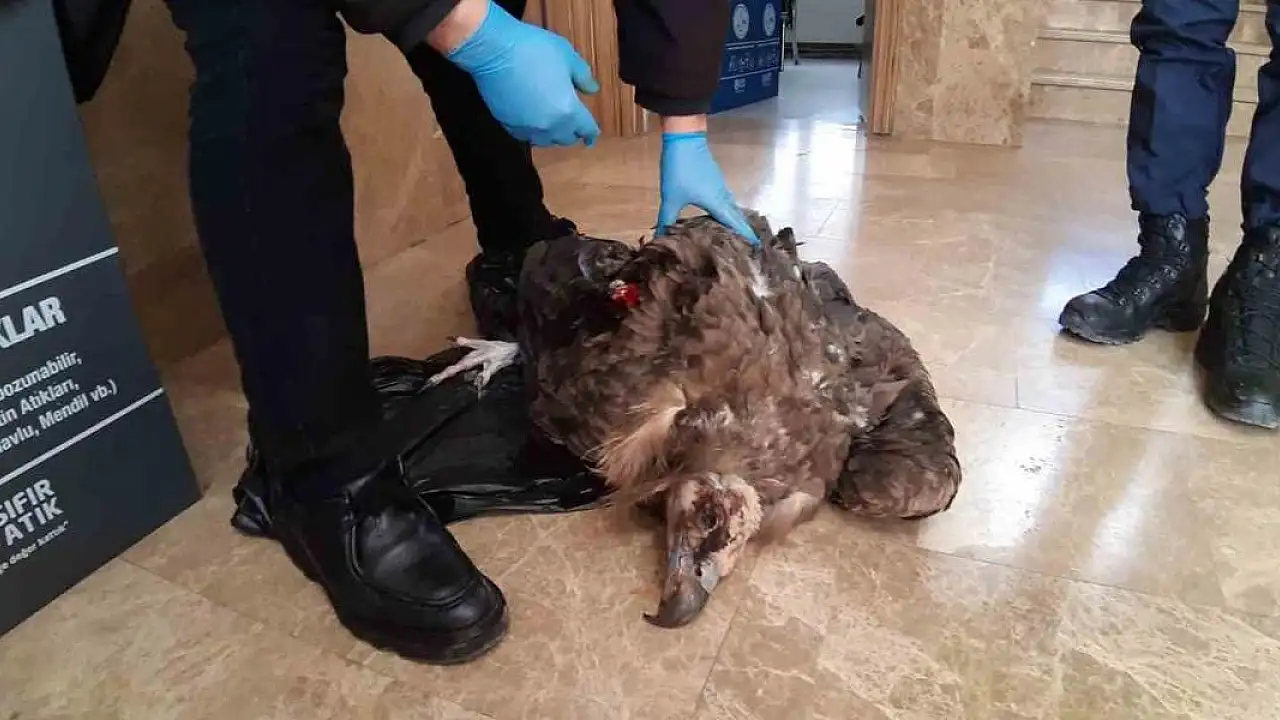 Ölmek üzere olan yaralı akbabanın yardımına jandarma yetişti