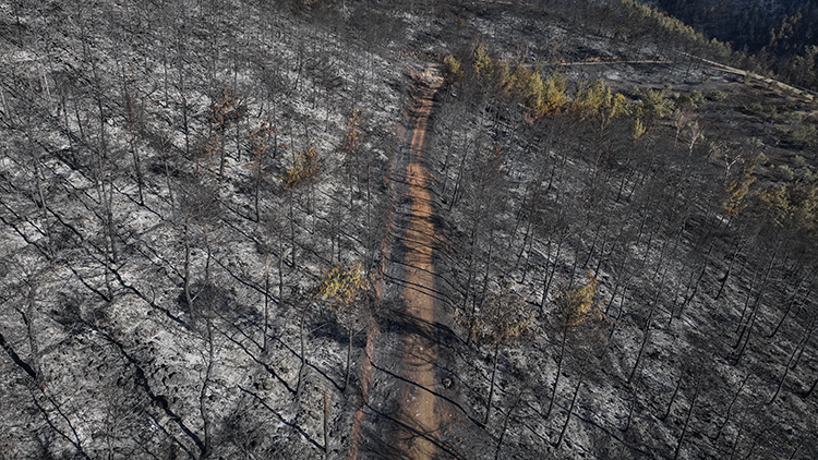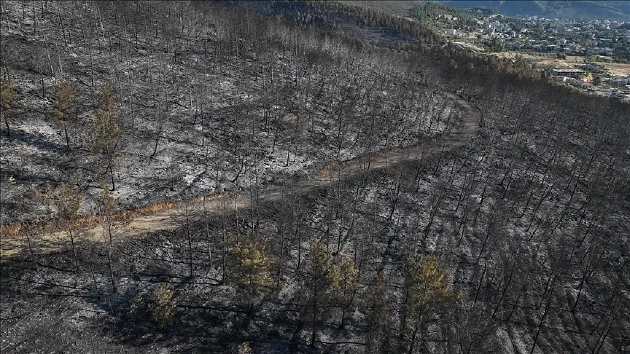 Görüntülerde, yanan alanların yerleşim yerlerine yakınlığı ve alandaki birçok ağacın küle dönmesi yer aldı.