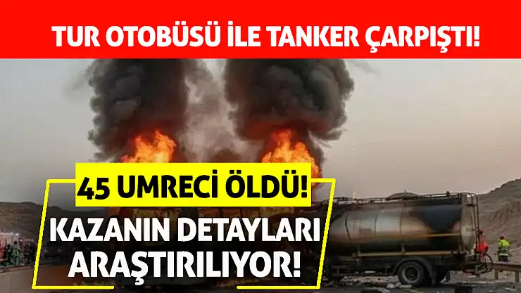 Medine yakınlarında ülkeye umre için gelenleri taşıyan otobüsün yakıt tankerine çarptığı kazada 45 kişi yaşamını yitirdi. Hayatını kaybedenlerin çoğunun Hindistanlı olduğu belirtildi.