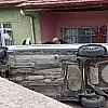 Otomobil evin bahçesine devrildi: 1 yaralı