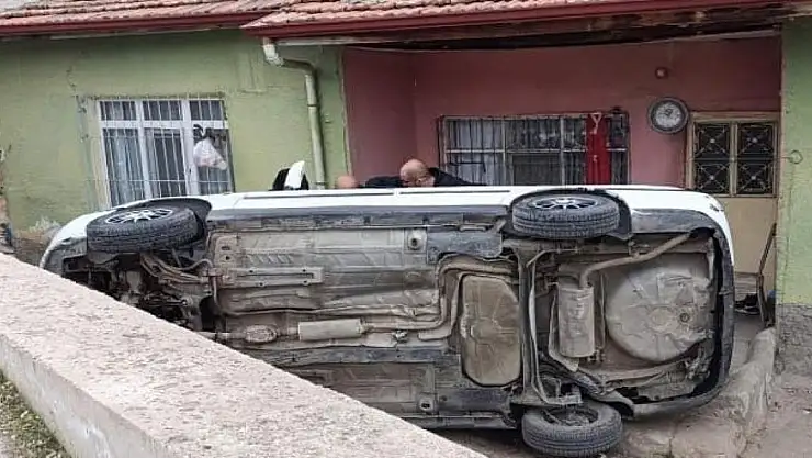 Kırıkkale'de kontrolden çıkan otomobil, evin bahçesine devrildi. Kazada 1 kişi yaralandı.