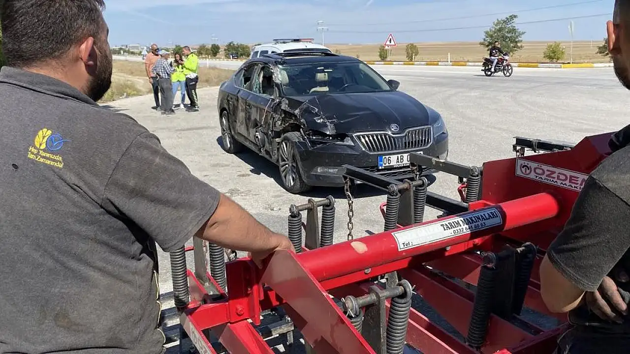 - Otomobil, traktöre bağlı tarım aletine çarptı