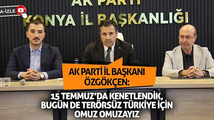 Özgökçen, "Yarın, 15 Temmuz'un yıl dönümünü idrak edeceğiz. O karanlık gecede, Konya'nın Mevlâna Meydanı'nda, caddelerinde, sokaklarında ‘Vatan bölünmez’ diye haykıran hemşehrilerimizle bir destan yazıldı. 15 Temmuz, milletimizin çelikten iradesinin, sarsılmaz kardeşliğinin zaferidir. O gece nasıl bir yumruk gibi kenetlendiysek, bugün de Terörsüz Türkiye'nin şafağında aynı ruhla omuz omuzayız. 15 Temmuz'un ateşi, bugün Terörsüz Türkiye'nin meşalesini yakıyor. Allah'ın izniyle bu meşale, Konya'dan yükselerek, tüm Türkiye'yi aydınlatacak. Bu vesileyle, aziz Konyalı hemşerilerimi, yarın 15 Temmuz'un yıl dönümünde Mevlâna Meydanı'ndaki demokrasi nöbetine davet ediyorum" diye konuştu.