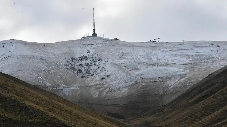 Erzurum'da dün aralıklarla etkili olan yağmur, gece yüksek kesimlerde yerini kara bıraktı.Yağışla Palandöken Kayak Merkezi pistinin en zirve noktası olarak bilinen 3 bin 200 rakımlı Ejder Tepesi beyaz örtüyle kaplandı.