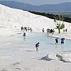 Bayram tatilinin başladığı 5 Haziran'dan bu yana Pamukkale'ye 17 bin 132 turist geldi.UNESCO Dünya Mirası Listesi'ndeki 'beyaz cennet'e gelenler, hava sıcaklığının 36 dereceye ulaştığı bölgede hem doğal güzellikleri hem tarihi yapıları geziyor.