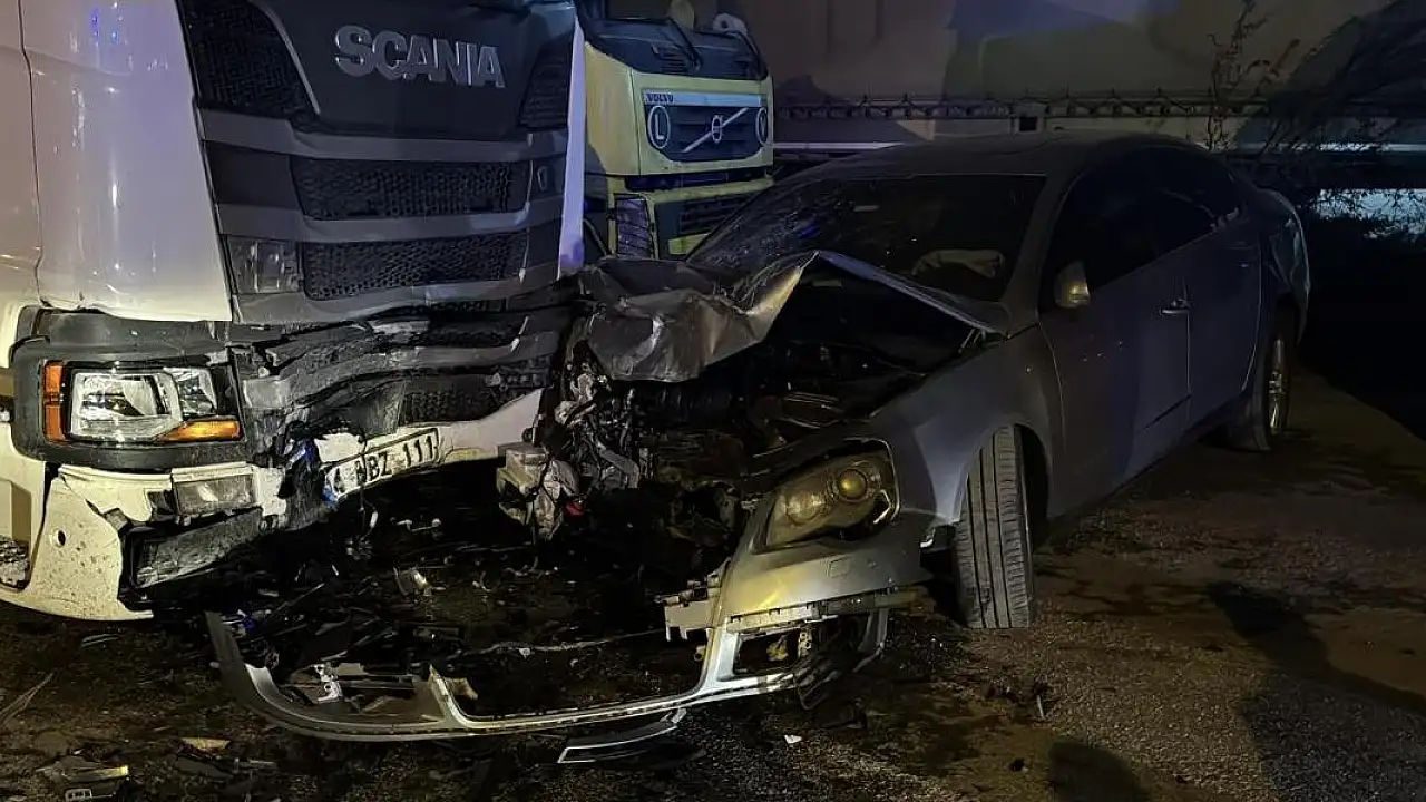 Otomobil, yol kenarındaki tır ile tıra çarparak durabildi.