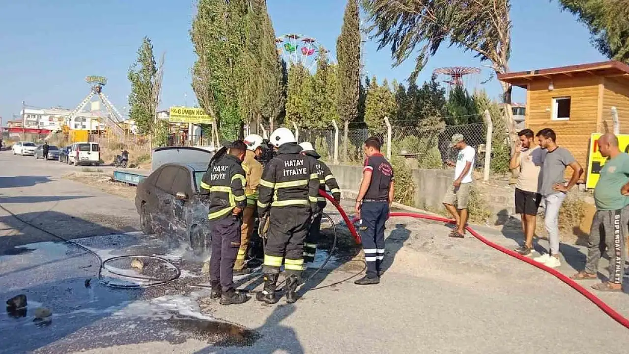 Hatay'ın Antakya ilçesinde park halindeyken yanmaya başlayan otomobilde hasar oluştu.