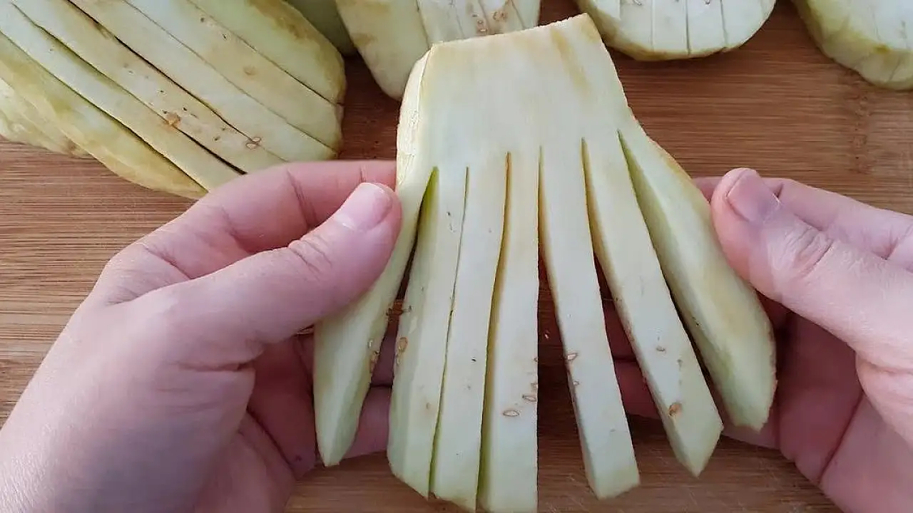 Patlıcanları güzelce soyup yıkayın. Sonrasında acılığını almak için, soğuk tuzlu su içerisinde bekletin. Sonra suyu değiştirip tekrar suda bekletin. Patlıcanları dilimleyin ve tekrar tuzlu su içerisinde bekletin. Böylelikle bu işlem patlıcanların daha az yağ çekmesini sağlayacak.