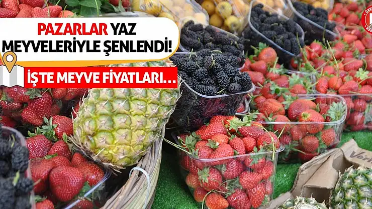 Yaz ayının yaklaşmasıyla birlikte pazaryerleri yaz meyveleriyle renklenmeye başladı. Erik, çilek, kiraz, kayısı, karadut, badem, karpuz, yaban mersini, mango ve yenidünya gibi birçok yaz meyvesi tezgâhlarda alıcılarını bekliyor.