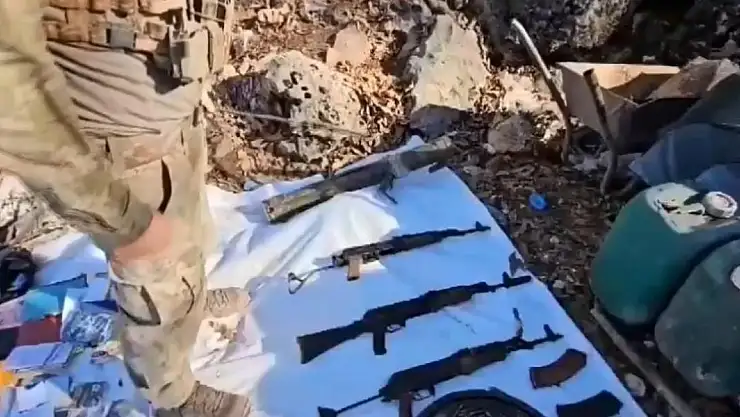 Bakanlığın sosyal medya hesabından yapılan açıklamada, kahraman Türk Silahlı Kuvvetleri'nin, Irak'ın kuzeyindeki arama tarama faaliyetlerine aralıksız devam ettiği belirtilerek, "Pençe-Kilit Operasyonu bölgesinde tespit edilen mağarada; silah, mühimmat ve yaşam malzemesi ele geçirildi. Ele geçirilenler şu şekilde: 1 termobarik lav silahı, 3 AK-47 piyade tüfeği ve 6 şarjörü, 553 AK-47 piyade tüfeği mühimmatı, 4 termal şemsiye, 4 savunma ile 2 taarruz el bombası, el yapımı patlayıcı düzenekleri ve fünyeler, 1 M-16 piyade tüfeği dipçiği, 1 fotoğraf makinesi, 2 kindle, 3 radyo, 1 telefon, 1 gaz maskesi, alpha-fire düzenekleri, çeşitli ebatta aküler, kesintisiz güç kaynağı, 2 adet 2,5 kilovat jeneratör, örgütsel dokümanlar, çok sayıda yaşam malzemesi ve tıbbi malzeme" denildi.