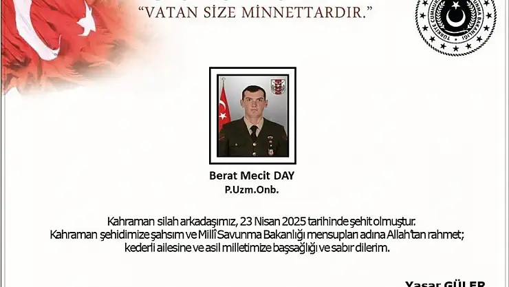 Milli Savunma Bakanlığı Pençe-Kilit operasyonu bölgesinde, 22 Nisan 2025 tarihinde terör örgütü mensupları tarafından yapılan saldırı sonucu ağır yaralanan Piyade Uzman Onbaşı Berat Mecit Day'ın Işıklı Sahra Hastanesinde yapılan tüm müdahalelere rağmen kurtarılamayarak 23 Nisan 2025 tarihinde şehit olduğu açıkladı. MSB'nin sosyal medya hesabından yapılan paylaşımda, "Bizleri derin bir acı ve üzüntüye boğan bu olayda hayatını kaybeden aziz şehidimize Allah'tan rahmet, kederli ailesine, Türk Silahlı Kuvvetleri ile asil milletimize başsağlığı ve sabır dileriz" ifadelerine yer verildi.