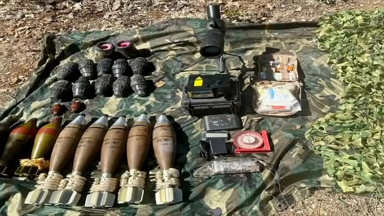 "2 AT-4 tanksavar silahı, 13 RPG-7 antitank mühimmatı, 1 RPG-7 antipersonel mühimmatı, 13 RPG-7 sevk fişeği, 19 taarruz tipi el bombası, 1 savunma tipi el bombası, 900 adet 5,56 milimetre piyade tüfeği mühimmatı, 440 PKMS makineli tüfek mühimmatı, 5 adet 82 milimetre havan sis mühimmatı, 3 adet 82 milimetre havan tahrip mühimmatı, 17 adet 82 milimetre havan tapası, 9 adet 81 milimetre havan tahrip mühimmatı, 2 havan barut hakkı, 616 ZU-23 mühimmatı, 1 ZU-23 namlusu, 22 ZU-23 mühimmat kutusu, 2 el yapımı patlayıcı (EYP) basma düzeneği, 1 adet 60x60 gözetleme dürbünü, 1 lazer mesafe ölçme cihazı, 1 sağlık çantası ve malzemesi, 1 altılı pil bloğu, 2 jelikan."