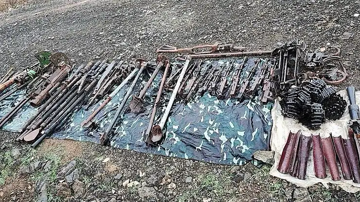 "11 AK-47 piyade tüfeği ve 1 adet şarjörü, Doçka makineli tüfeğe ait 1 çatal ayak, 2 hava sehpası, 14 tüfek namlusu, 2 tüfek gövdesi, 2 alev gizleyen, 241 Doçka makineli tüfek mühimmatı, 82 milimetre havan namlu döşeme, 3 el kundağı, 4 çatal ayak, 6 boş şerit, 11 RPG-7 üst kundağı."