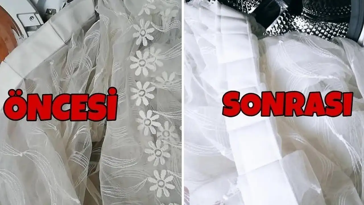 Bu yöntem hem perdelerinizi kar gibi beyazlatır, hem de daha az kırışmasını sağlar.