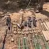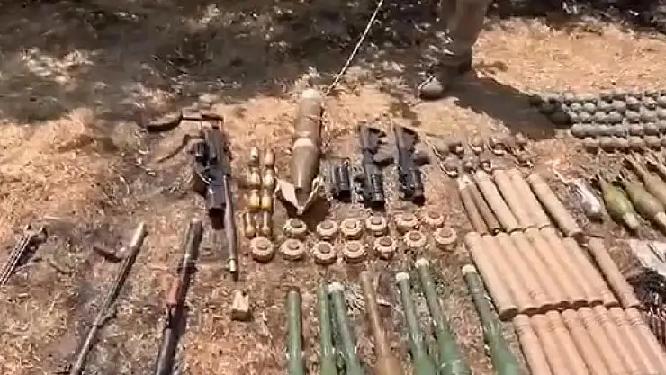 "6 çok namlulu roketatar mühimmatı, 8 tuzaklanmış havan mühimmatı, havan mühimmatına ait 12 taşıma kapsülü, 1 kutu makineli tüfek mühimmatı, çok miktarda yaşam malzemesi ve ekipmanı ile temizlik malzemesi."