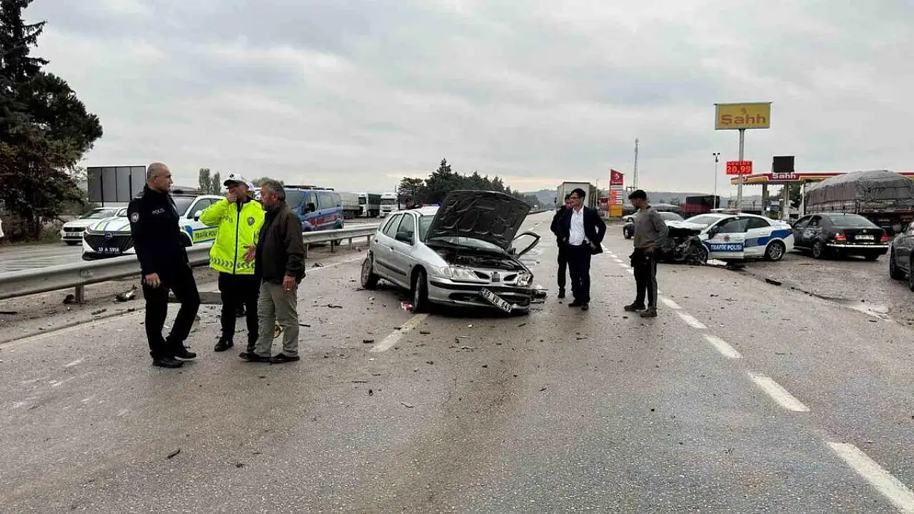 Balıkesir’de polis aracının otomobille çarpışması sonucu 1’i polis memuru 3 kişi yaralandı.