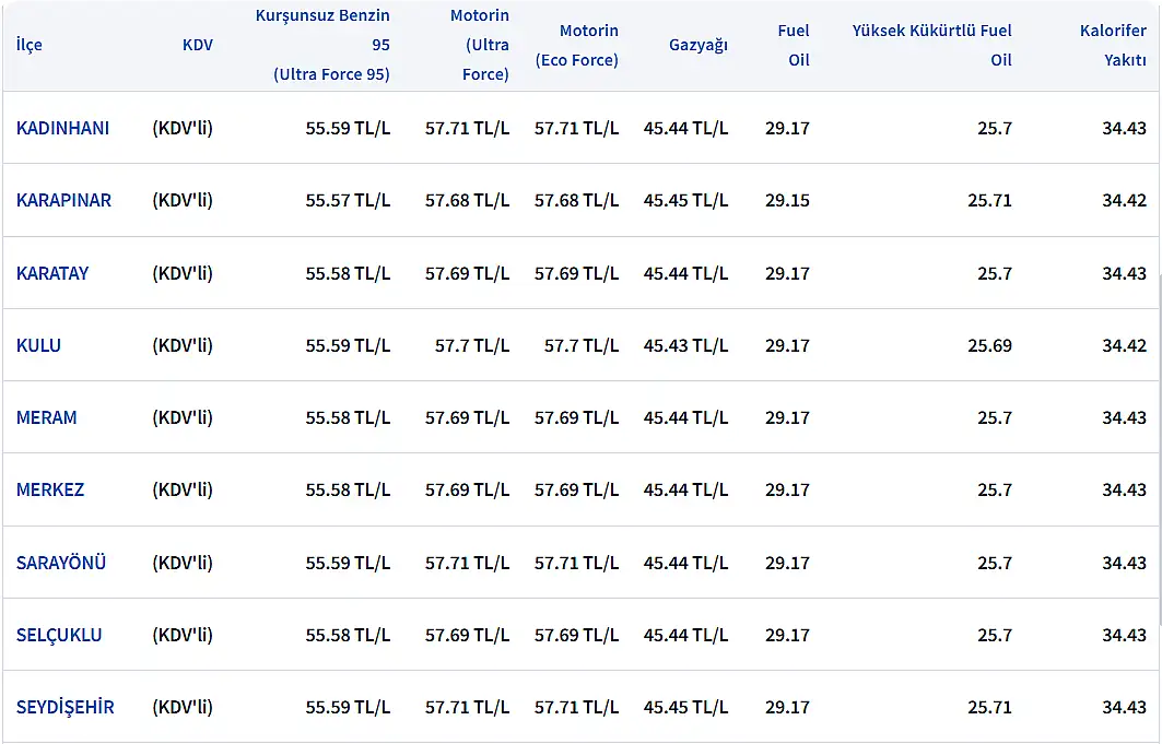 İŞTE KONYA'DAKİ GÜNCEL AKARYAKIT FİYATLARI