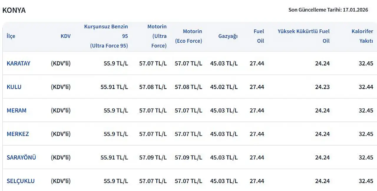 İŞTE KONYA'DAKİ GÜNCEL AKARYAKIT FİYATLARI