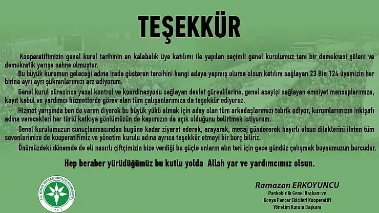 Ramazan Erkoyuncu Teşekkür