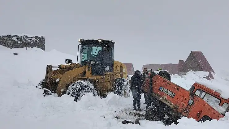 İş makineleriyle yaklaşık 3 saattik çalışmanın ardından yolu açan ekipler, 6 kişi ve sürünün ilçe merkezine ulaşmasını sağladı.
