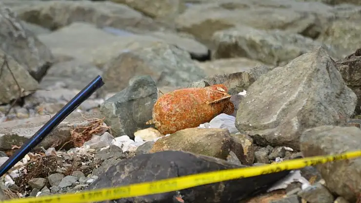 Rize'de patlamamış 'su altı bombası' kıyıya vurdu