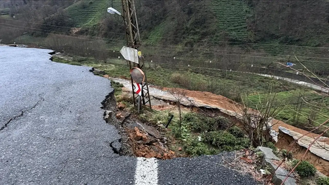 Yolun kenarındaki istinat duvarının çökmesi sonucu toprak kayması meydana geldi. Yol kenarındaki yüksek gerilim direği de çökme nedeniyle aşağı kaydı.