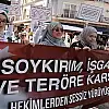 İstanbul Fatih Çemberlitaş'ta 2.Abdülhamid Han Türbesi önünde toplanan grup, 'Soykırım, işgal ve teröre karşı hekimlerden sessiz yürüyüş' yazılı pankart açtı.