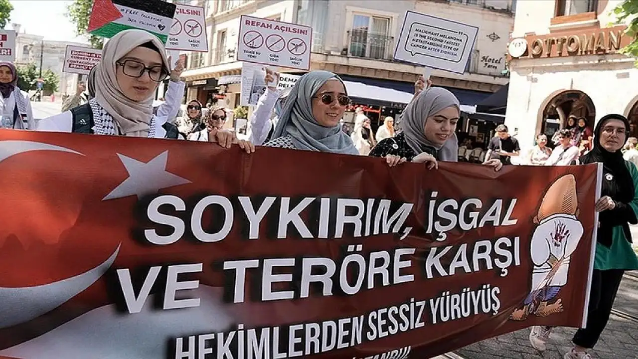Sağlık çalışanlarından İsrail'e tepki için sessiz yürüyüş