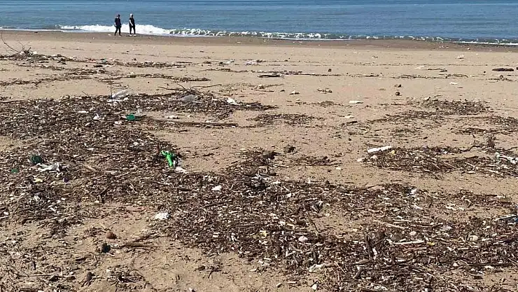 Karadeniz'deki çöpler, dalgalarla Bartın'ın İnkumu beldesindeki sahile sürüklendi. Sahile vuran çöpler arasında tıbbi atıklar da dikkat çekerken, çamurlu akan Bartın Irmağı'nın döküldüğü bölgede denizin rengi kırmızıya dönüştü.