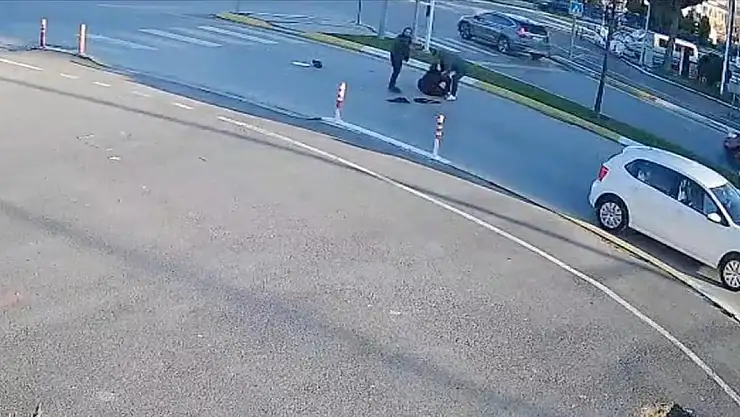 Görüntülerde, yaya geçidinden yolun karşısına geçmeye çalışan Embiye K'ye otomobilin çarpması ve çevredeki insanların yardıma gelmesi yer alıyor.