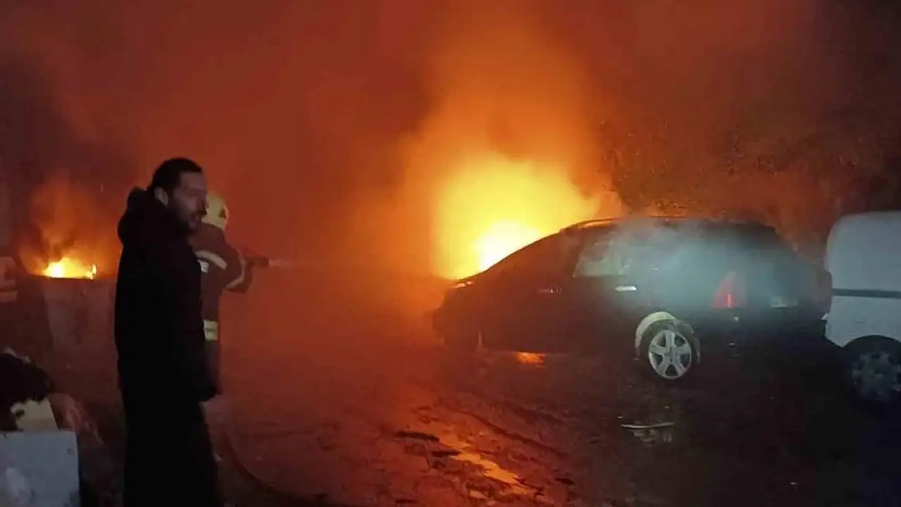Muğla'nın Bodrum ilçesinde sanayi sitesinde palmiye ağacına yıldırım düşmesi nedeniyle çıkan yangında park halindeki 2 otomobil yandı.
