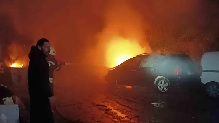 Sanayi sitesine yıldırım düştü: İki araç yandı