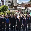 İlçe protokolü, gaziler ve şehit yakınları, Hüyük'teki anıt alanında bir araya geldi.Tören, Atatürk Anıtı'na çelenklerin sunulmasıyla başladı.